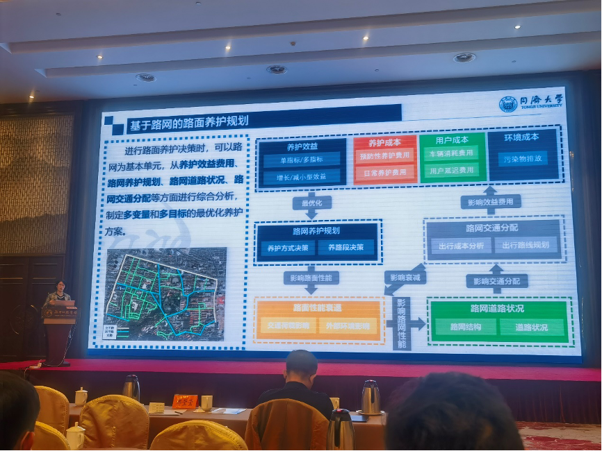 道路全息感知与未来交通安全研究中心执行主任、同济大学邢莹莹副研究员做《基于人工智能和三维检测技术的路面检测及养护决策的创新性技术》专题报告,介绍了路面损坏检测技术背景、路面损坏三维检测技术、路面损坏人工智能检测技术、路面养护决策技术及路面检测和养护决策技术展望。